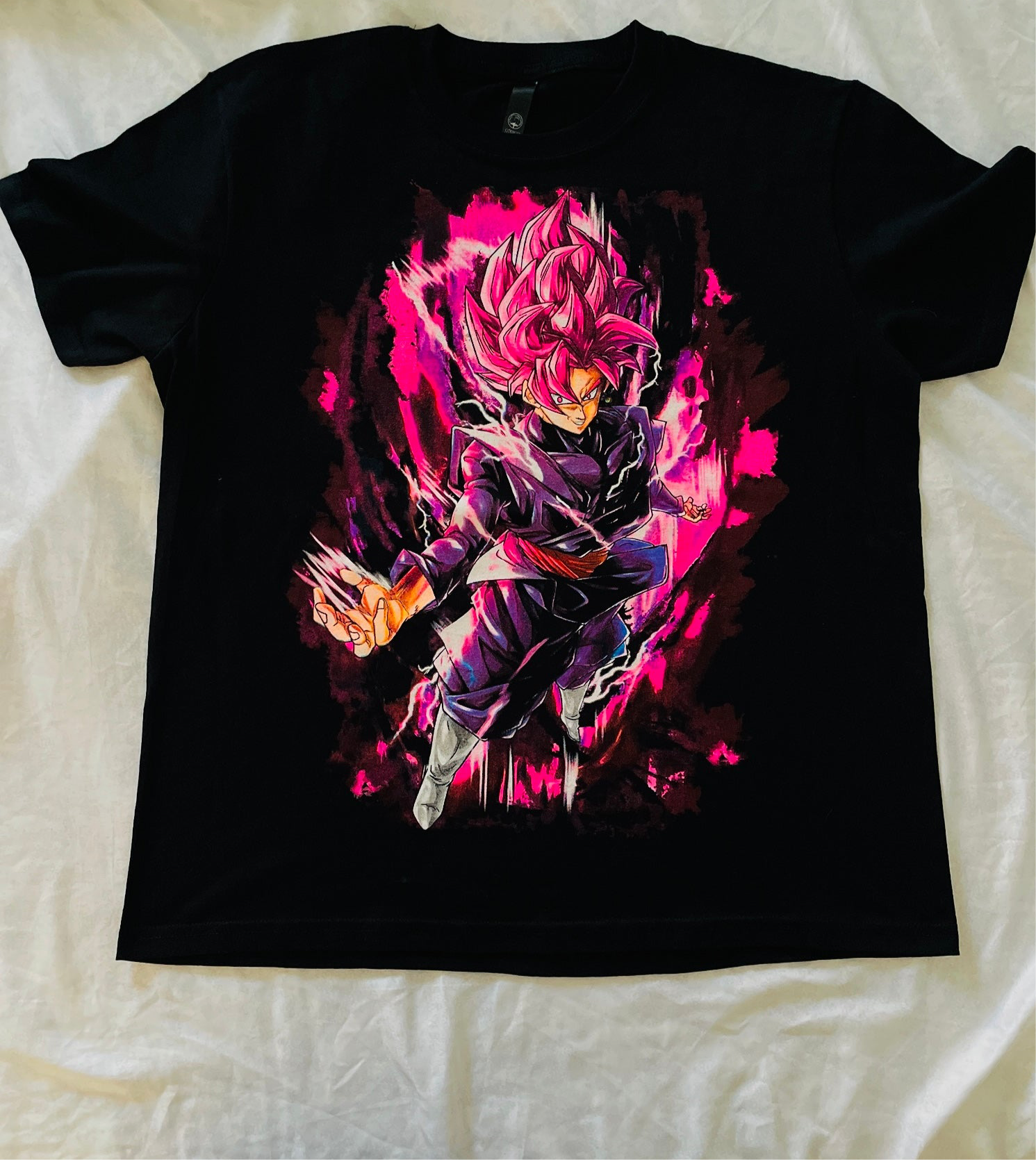Goku Black Super Saiyan Rosé Dragon Ball Super Vibrant Neón T-Shirt (Front & Back Print)