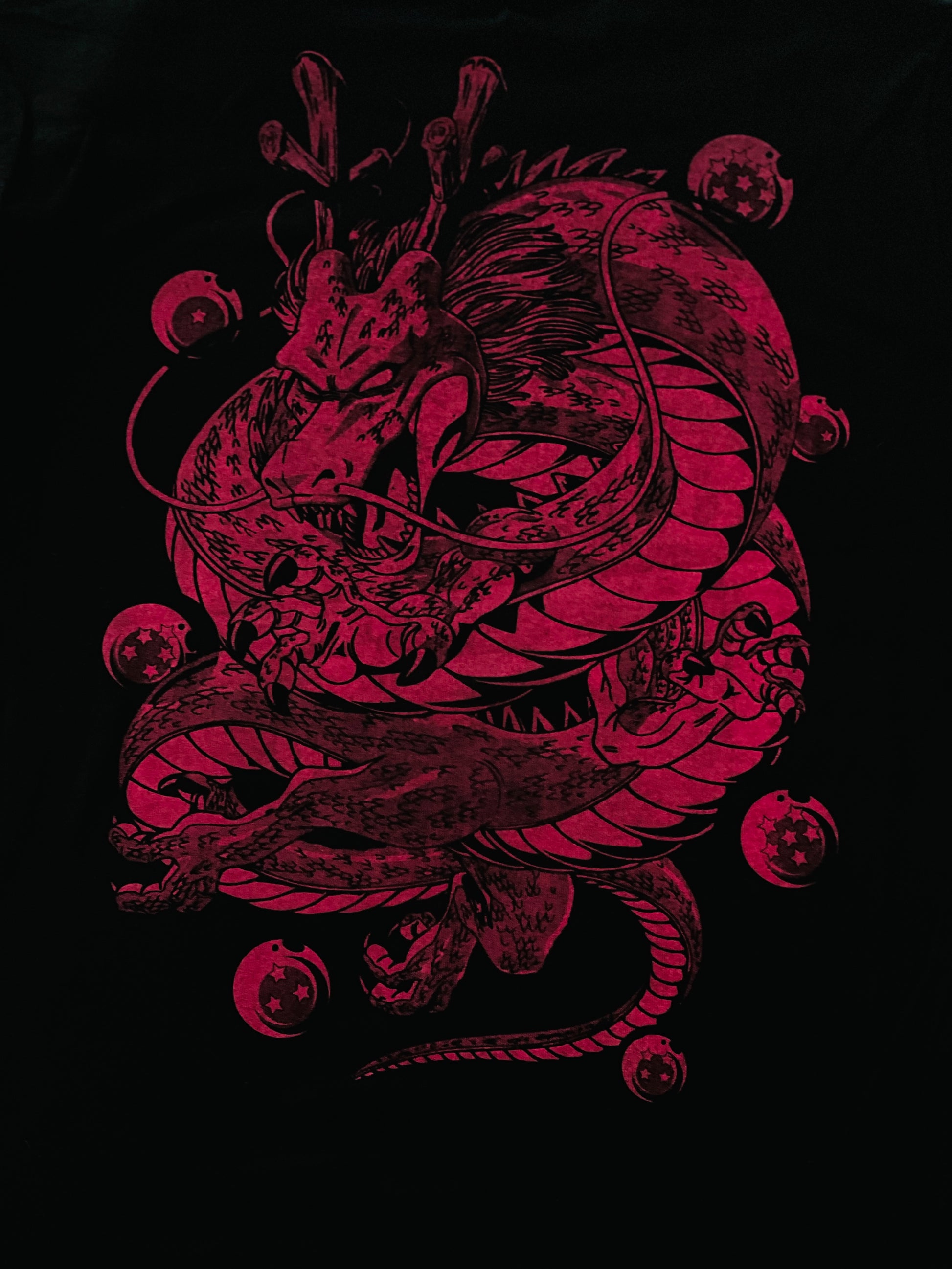 💥 Full-body artwork of Shenron with The Dragon Balls, radiating vivid fuchsia neon ink.
