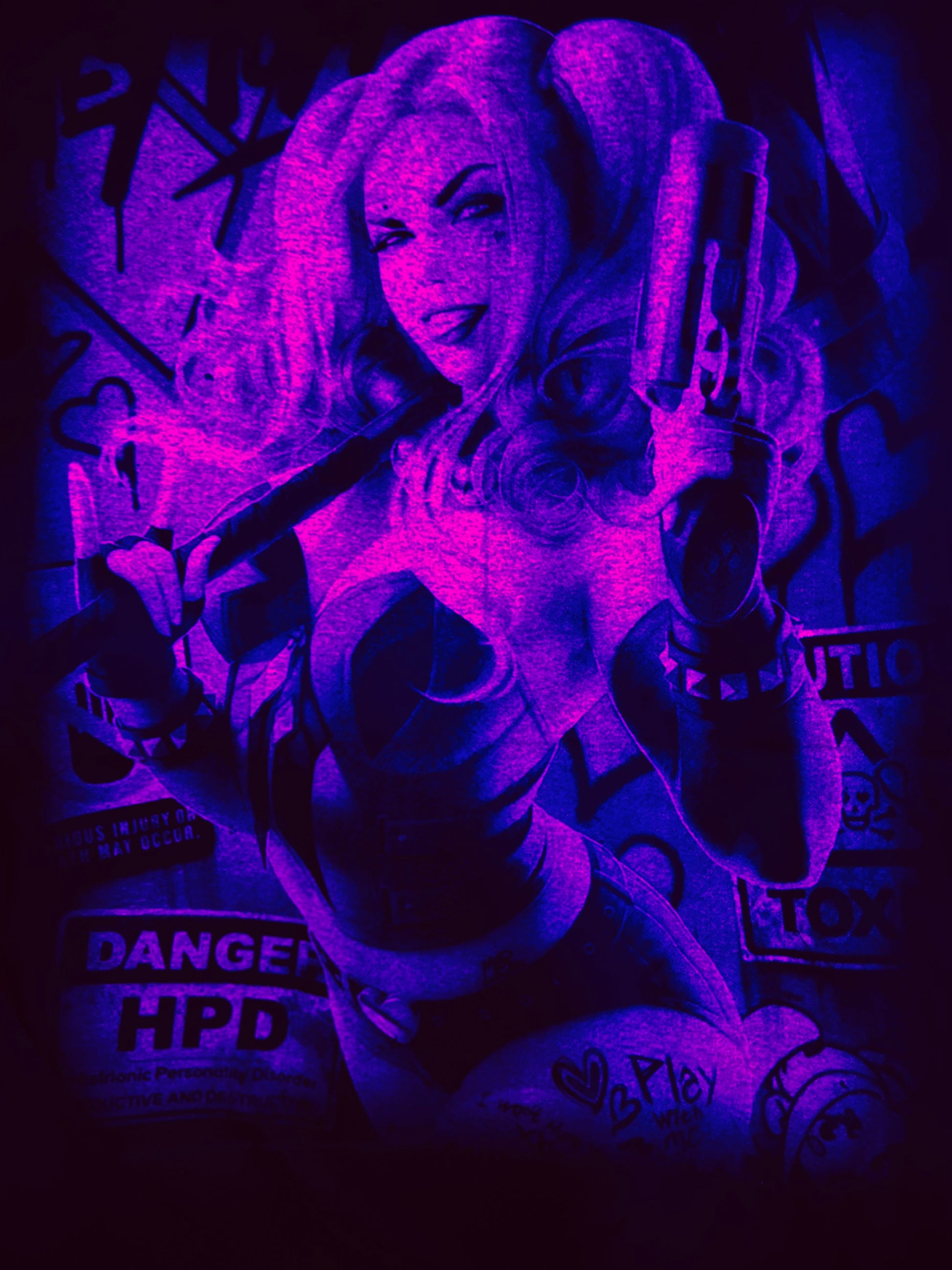 Harley Quinn Back Cosplay Harley Neon T-Shirt (Front & Back Print)