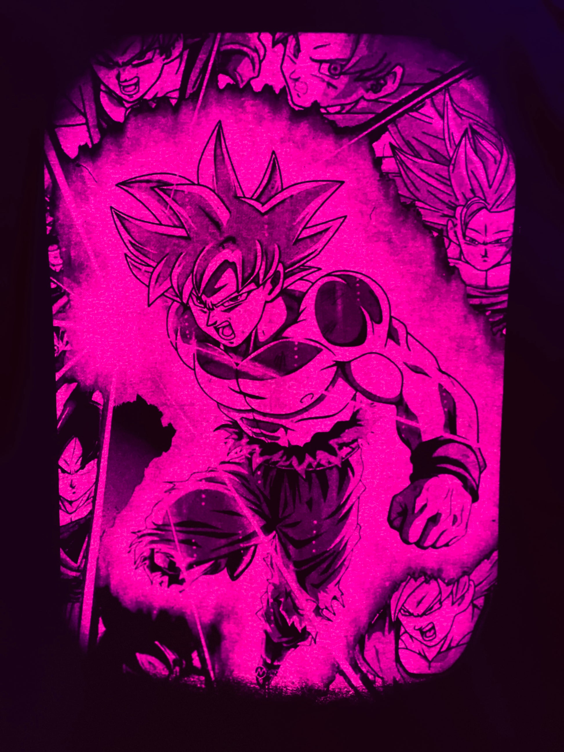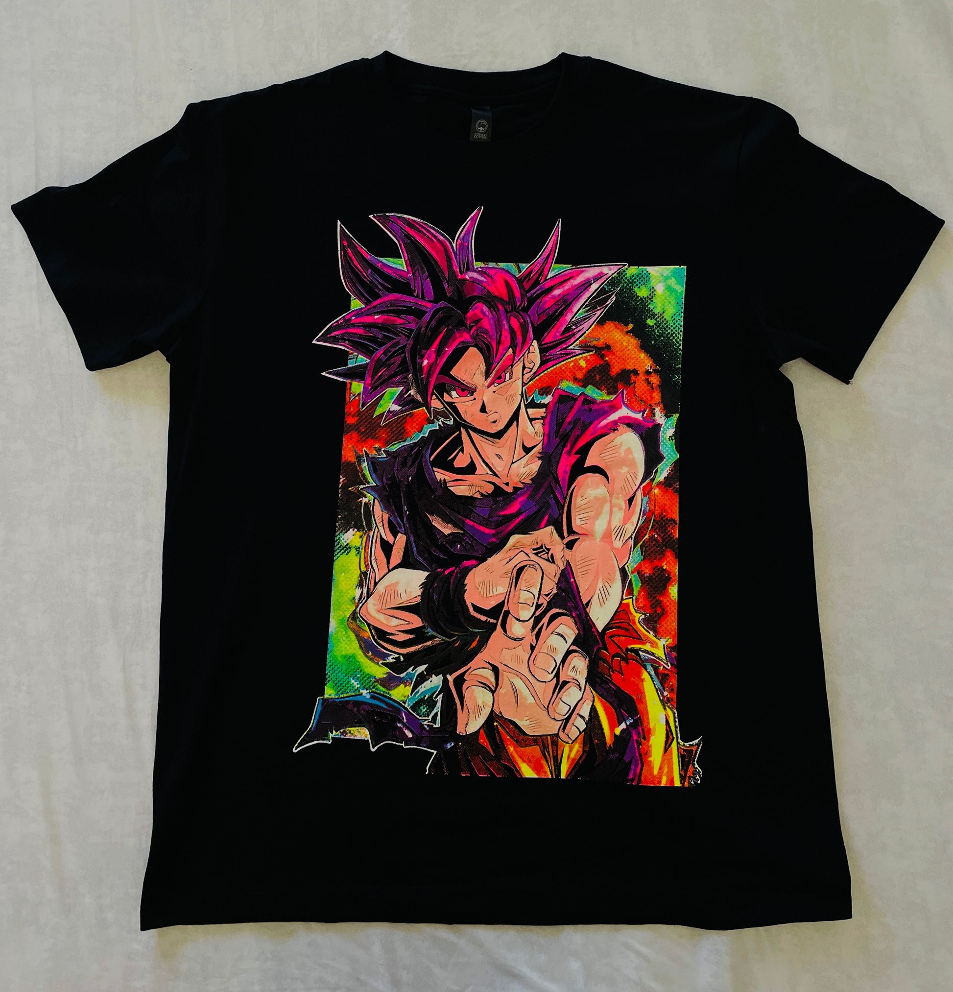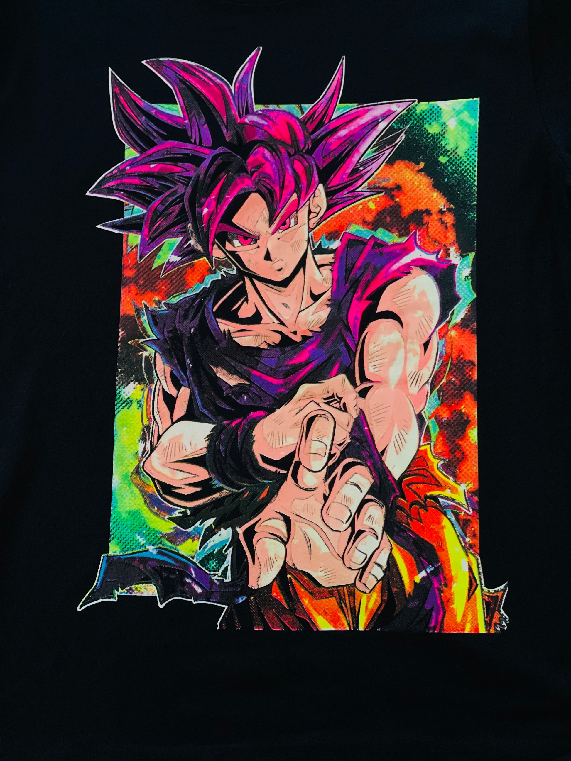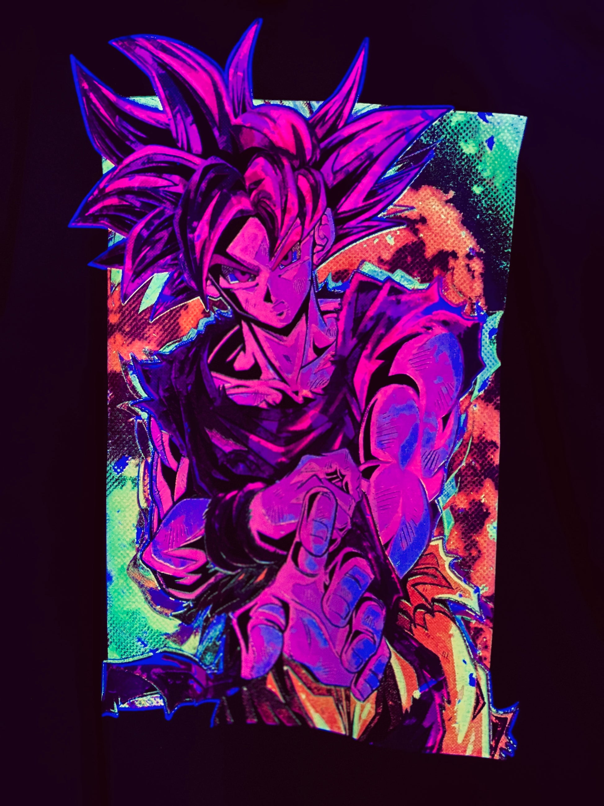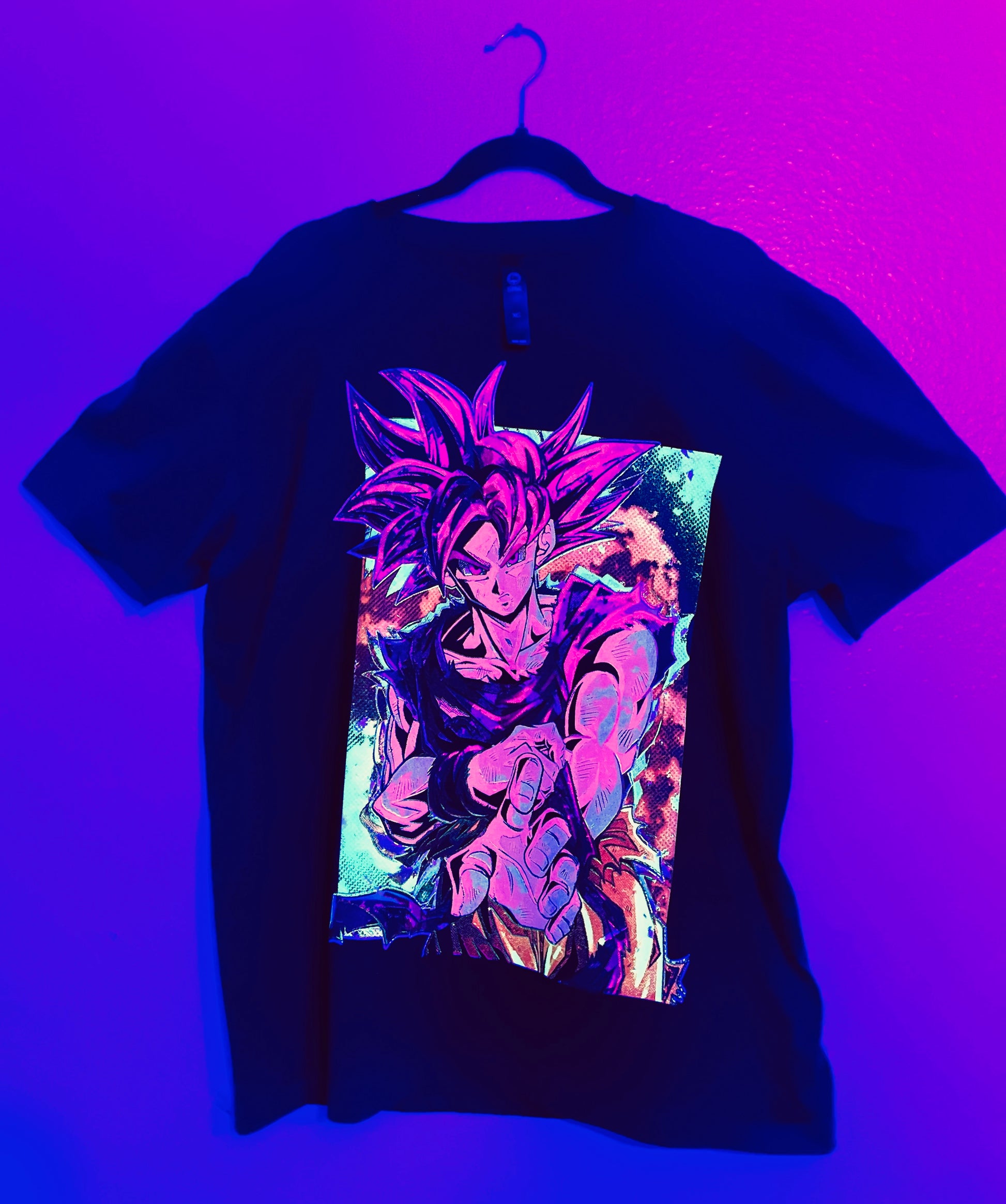 The SSJG Goku Neon Tee features a powerful dual-sided design with electrifying neon artwork — inspired by Goku’s divine transformation in Dragon Ball Super